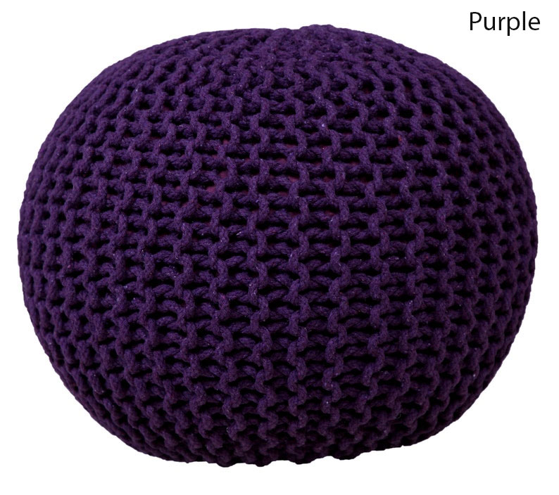 Spura Home Purple 15"x17" Gum Drop 100% Cotton Knitted Round Pouf Foot Stool Ottoman
